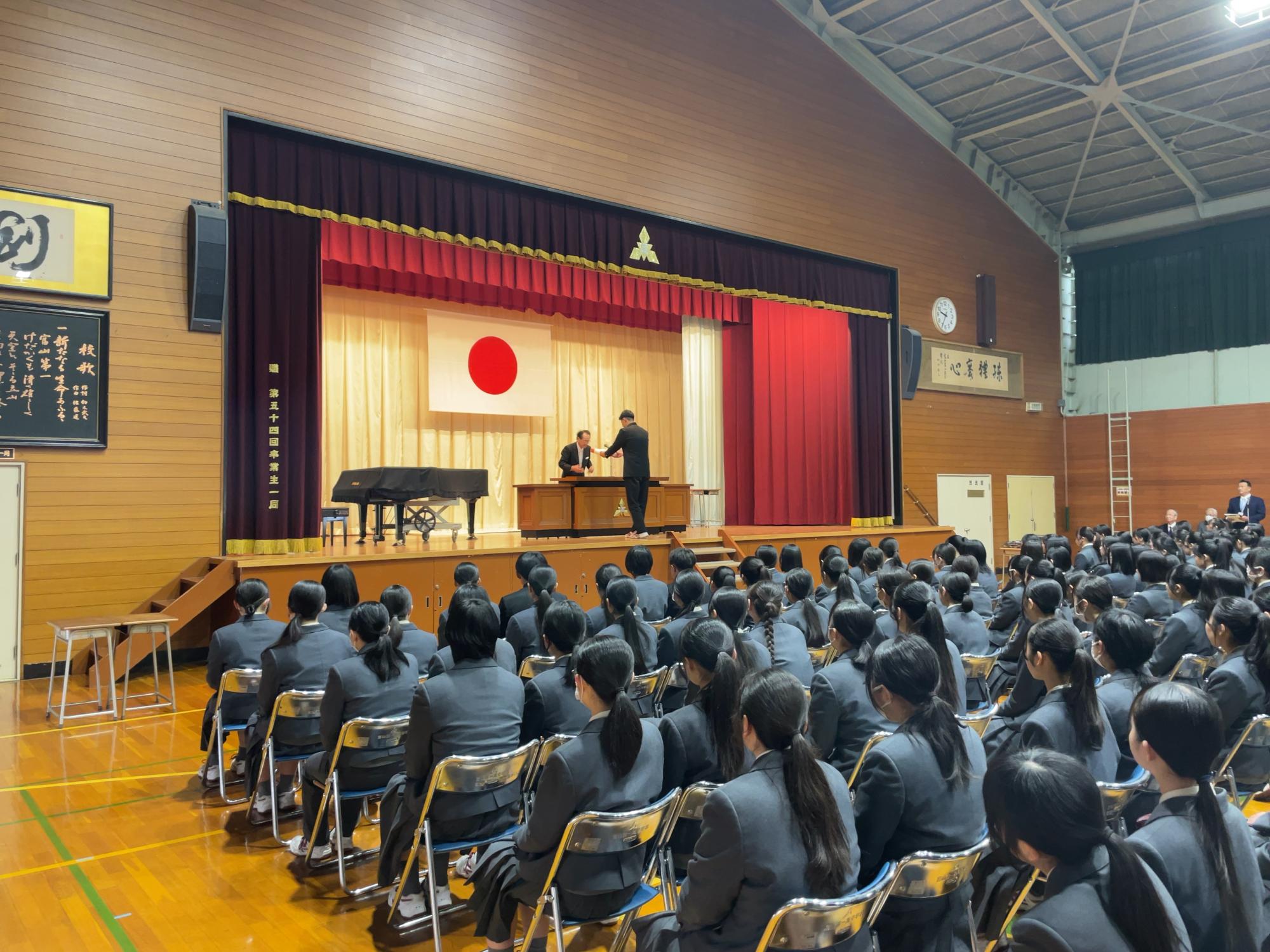 同窓会入会式本校の卒業生は、卒業後富山第一高校の同窓会に入会します。本年度も卒業を迎えた生徒たちが新...