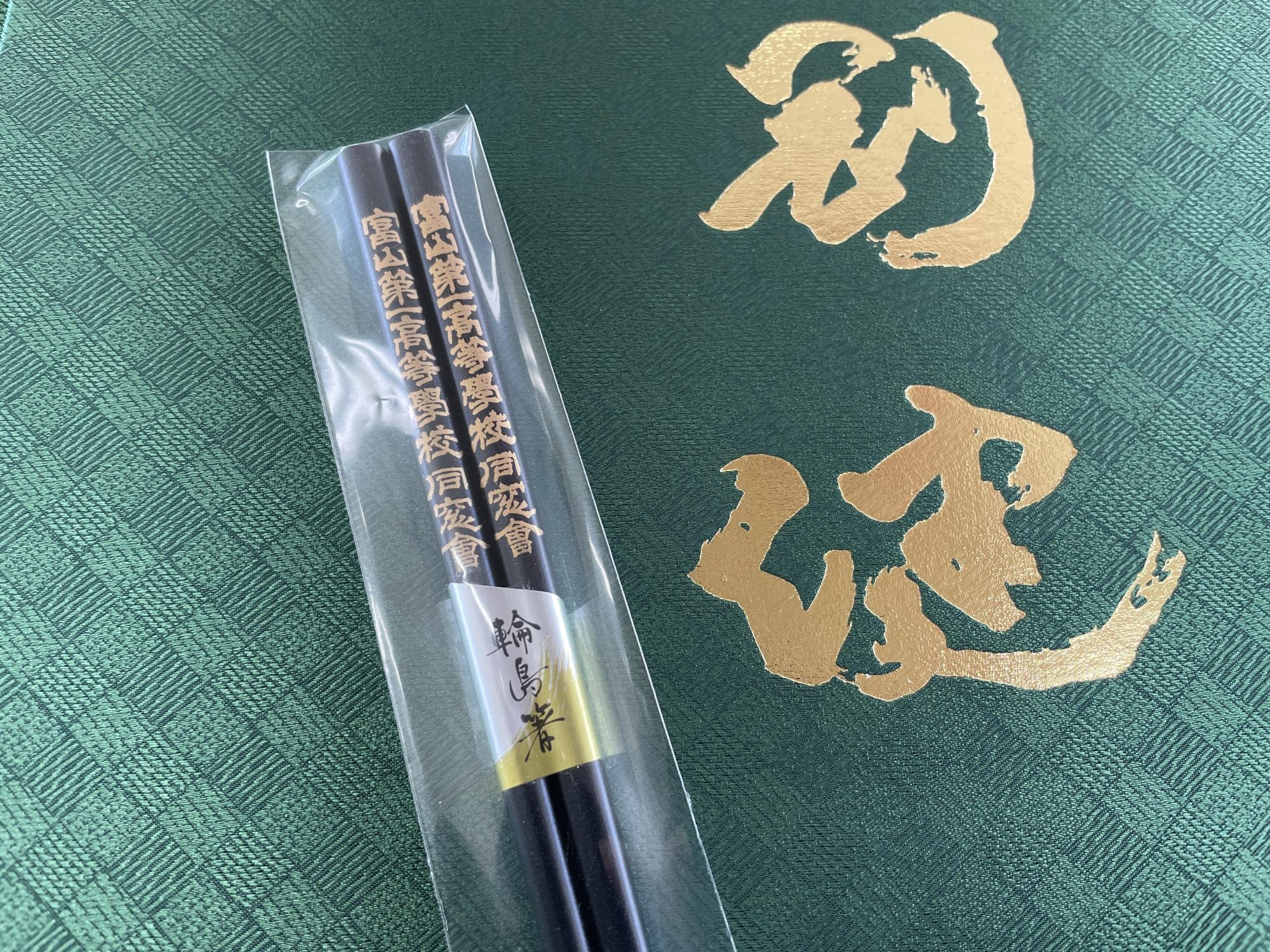 また、入会の記念として、卒業生一人ひとりに名前が刻まれた輪島塗の箸が贈られました。自らの名が刻まれた箸は、母校で過ごした日々の思い出とともに、これからの人生を歩む節目を記念する品となりました。