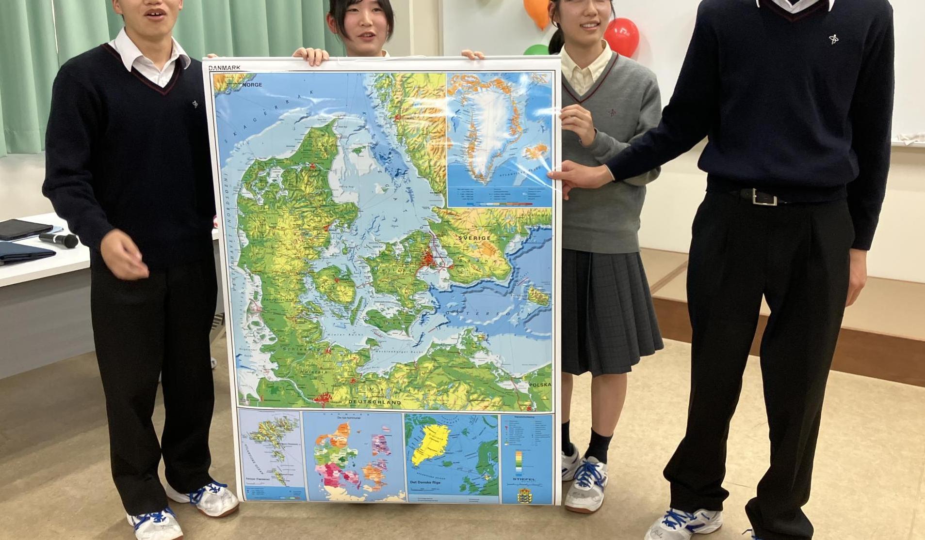 高校生活を起点に学ぶことで、デンマークや民主主義をより身近に感じることができた今回のプログラム。最後に記念として、マート先生からデンマークの地図をいただきました。地図は現在、トークスペースに掲示されています。