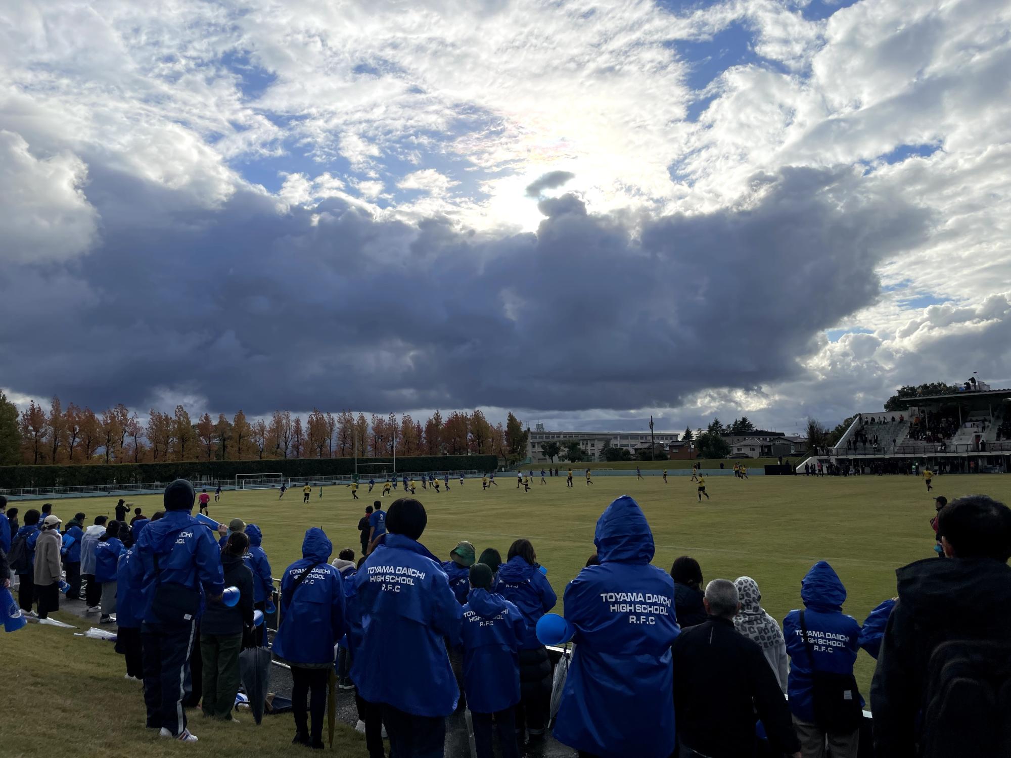 試合当日は激しい雨の中、生徒会をはじめとした応援団、保護者、卒業生、教職員がスタンドに駆けつけ、選手たちの背中を力強く押しました。声援に応えるように、選手たちは最後まで走り抜きました。支えてくれた多くの方々への感謝を胸に、花園での戦いに向けて新たな一歩を踏み出します。